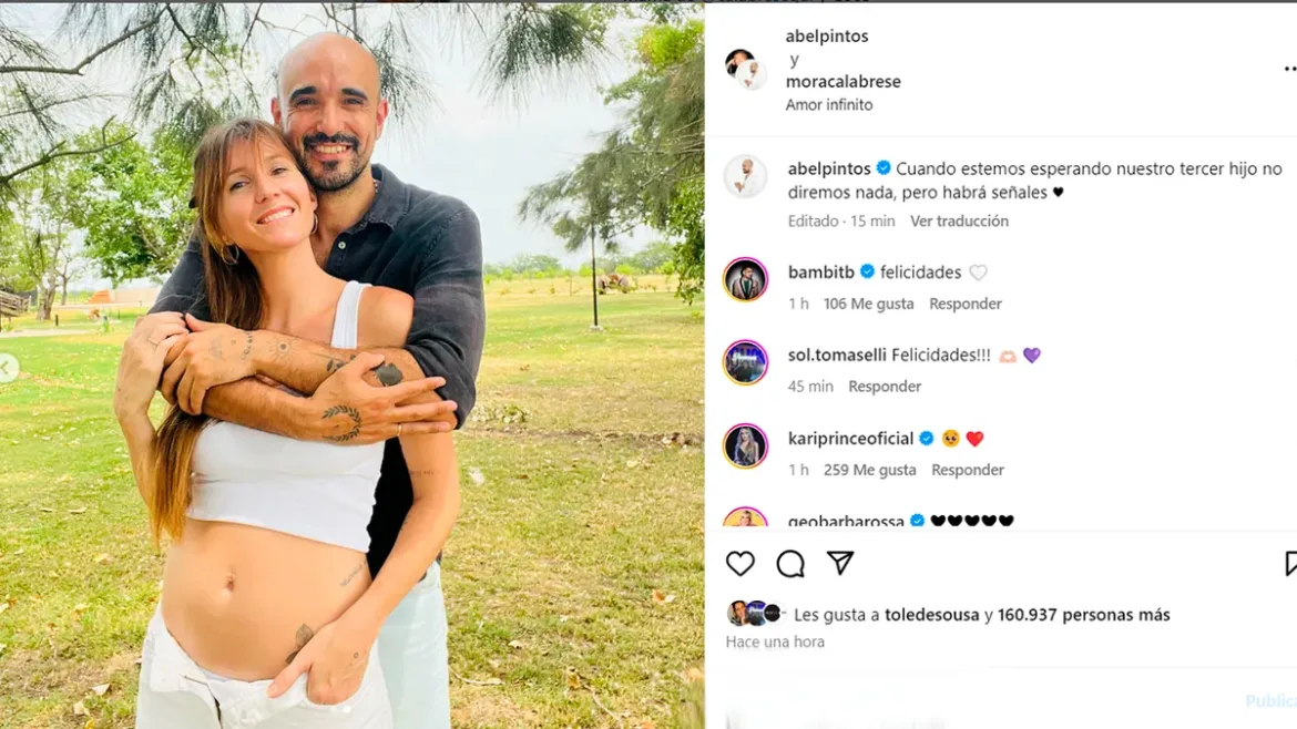 Abel Pintos anunció a través de su cuenta oficial de Instagram que será papá con Mora Calabrese una vez más y estallaron las redes sociales.