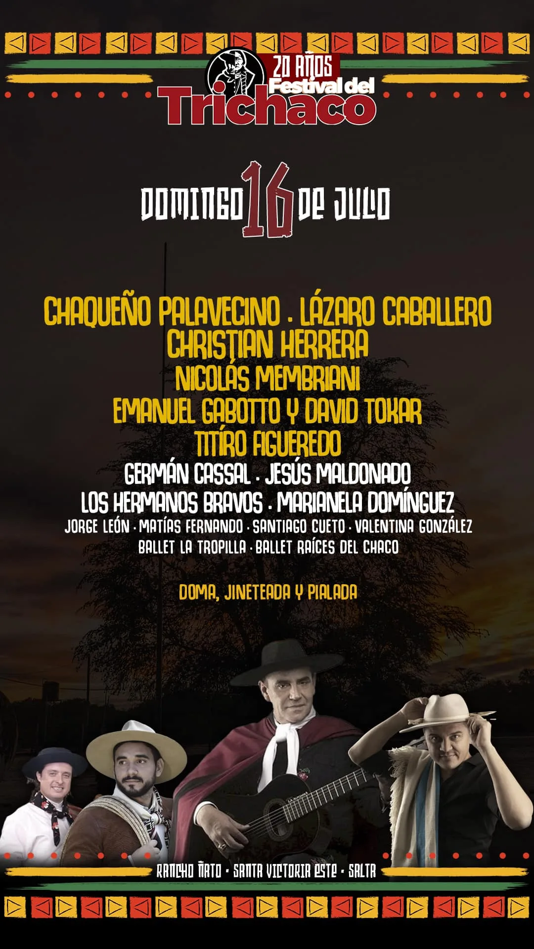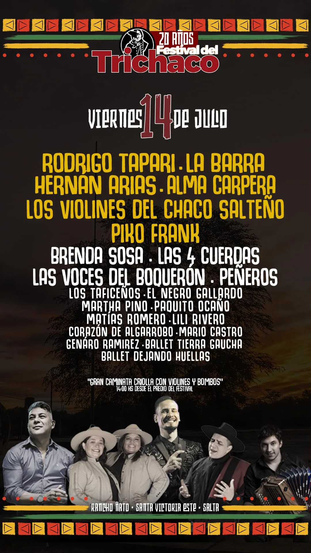 La nueva edición del Trichaco ya tiene fecha y está confirmado para el 14 , 15 y 16 de Julio. El Chaqueño Palavecino, creador de este festival, estuvo durante la mañana de hoy haciendo la presentación oficial y dijo que todo el Chaco Salteño se prepara para la edición de este 2023 que será inolvidable.
