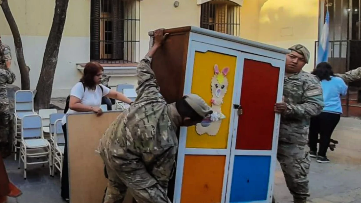 El sábado se realizó la “mudanza” de la escuela Nº 4.017 Presidente Domingo Sarmiento, ubicada en calle Alvarado 427, a dos establecimientos: uno en calle en la calle 20 de febrero 231 y el otro en de España 836. La idea es que mañana ya los chicos puedan cursar.