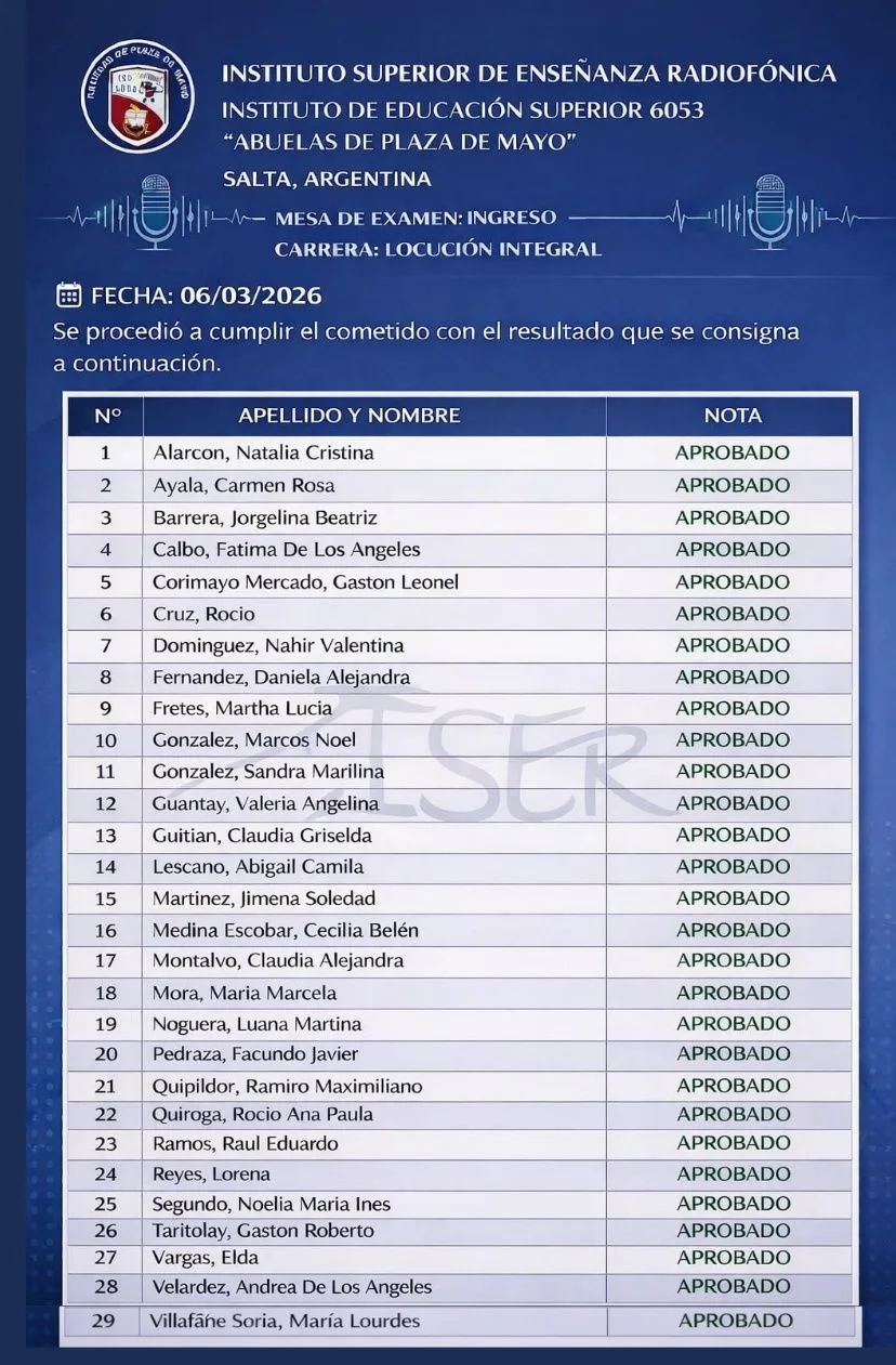 Desde Actualidad Salta celebramos la continuidad de la formación profesional de cientos de locutores salteños en el IES Abuelas de Plaza de Mayo. Desde esa primera cámara de recibidos en 2020 hasta los futuros profesionales que obtendrán su título en 2026, son fruto del esfuerzo en común entre profesores y estudiantes en el marco de la educación pública gratuita.