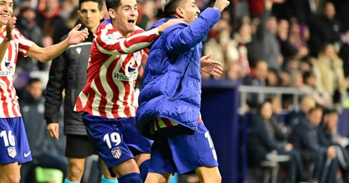 Correa sale del banco y se acerca lo máximo posible a la línea (donde se encontraban Griezmann y Koke, como había indicado el Cholo) para celebrar “junto” a ellos y el resto del público ya con la campera puesta, algo absolutamente insólito en la historia del fútbol producto del arribo del VAR y las nuevas tecnologías.