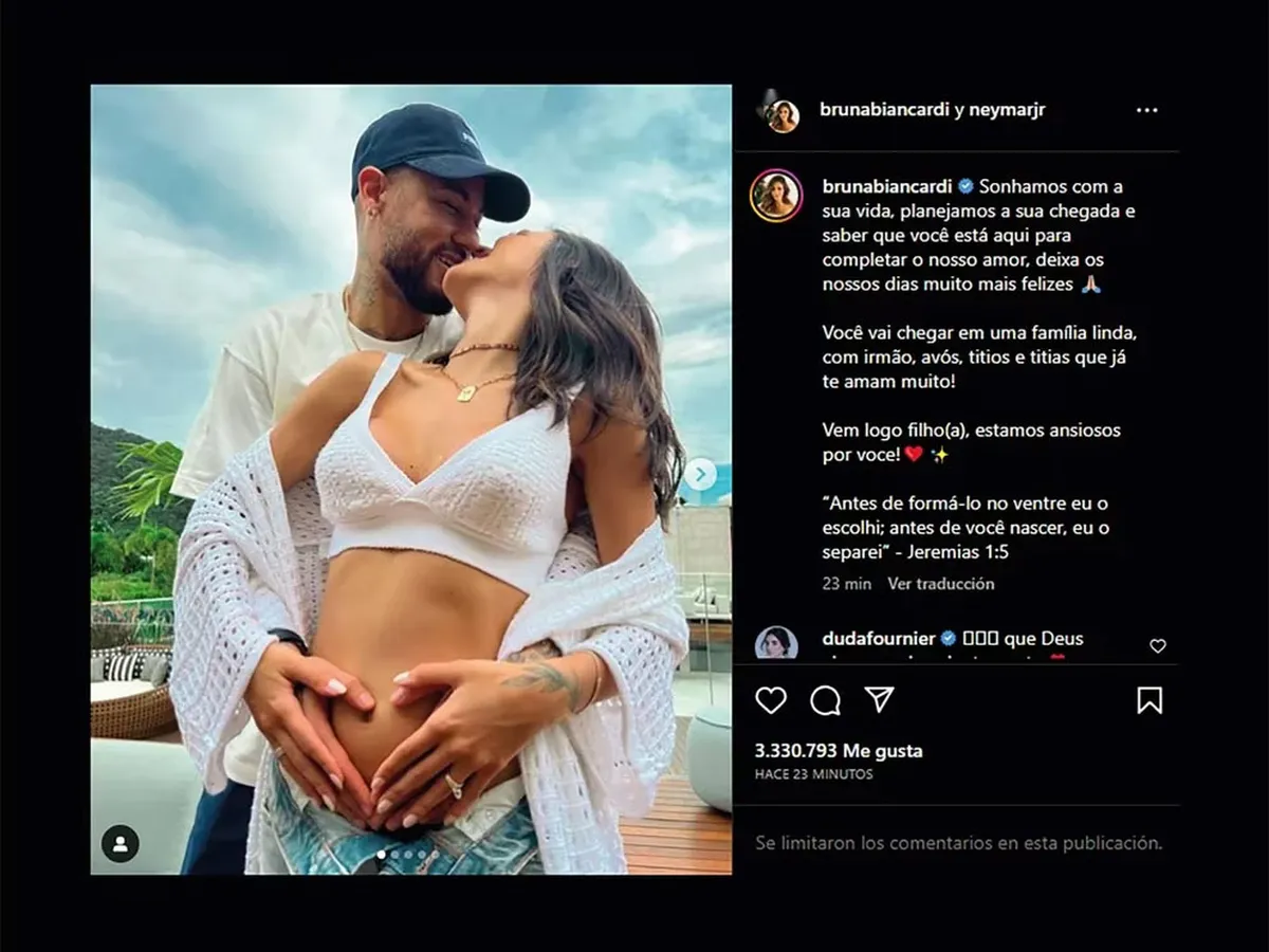 En redes sociales la feliz pareja Neymar y Bruna Biancardi anunciaron que serán padres. “Soñamos con tu vida, planeamos tu llegada y saber que estás aquí para completar nuestro amor hace que nuestros días sean mucho más felices”, reza el mensaje que compartió la joven en su cuenta de Instagram.