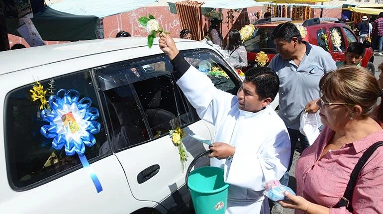 En el horario de 8 a 13: Bendiciones de vehículos y ofrendas en Anzoátegui desde Zuviría a Mitre. Ingreso por: Zuviría a Anzoategui vereda oeste- sentido sur-norte para el saludo en el atrio a la Virgen de Urkupiña.