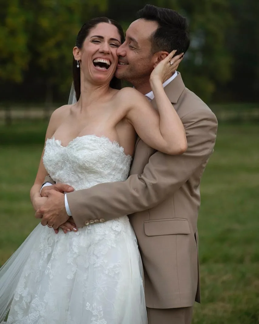 La boda se habría celebrado el sábado 22 de marzo y recién el domingo el cantante realizó el anuncio que vino acompañado por románticas fotografías de su gran día. En una de las postales, aparecen corriendo al aire libre, ella con un vestido de novia muy clásico, con velo y corte corazón. Mientras que el cantautor optó por un traje en tono ocre.
